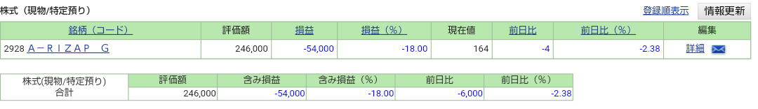 2020-06-19 ポートフォリオ 営業日:2020/6/19 ポートフォリオ 18日のNY株式市場は、NYダウが下落したもののS&P500とNASDAQは上昇。不安定ですね。 本日の東京株式市場は、日経平均は上昇したもののTOPIXは下落。 今晩のNY株式市場は上昇スタートとなりそうですが… SBI証券 RIZAPは続落です。不安定ですね。 微増したファンドもたくさんありましたが、Jリートの下落が大きくて相殺されてしまった感じですね。不安定な相場なので、積立が有効となりますが… ウェルスナビ THEO